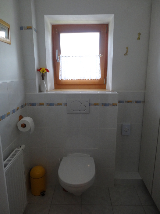 We have three double rooms, two with ensuite facilities, one family room with ensuite which can accommodate a family with one child, and one single room. There are shower and WC facilities on each floor. Two of the double rooms are west facing balcony rooms offering beautiful views, particularly of the evening sunset, which we have spent many an evening enjoying with a glass of wine.