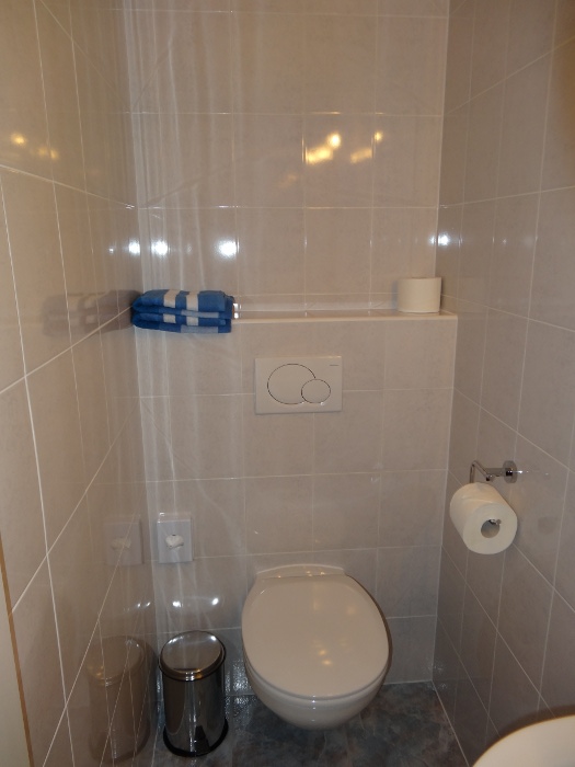 We have three double rooms, two with ensuite facilities, one family room with ensuite which can accommodate a family with one child, and one single room. There are shower and WC facilities on each floor. Two of the double rooms are west facing balcony rooms offering beautiful views, particularly of the evening sunset, which we have spent many an evening enjoying with a glass of wine.